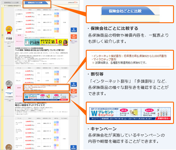 ペット保険を取り扱っている11社と提携していて、